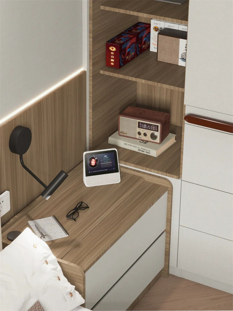▪️即使年轻人可能不选择床头柜,父母房间里一定要安排上,放置书、老花镜、保温杯等日常必需品~
