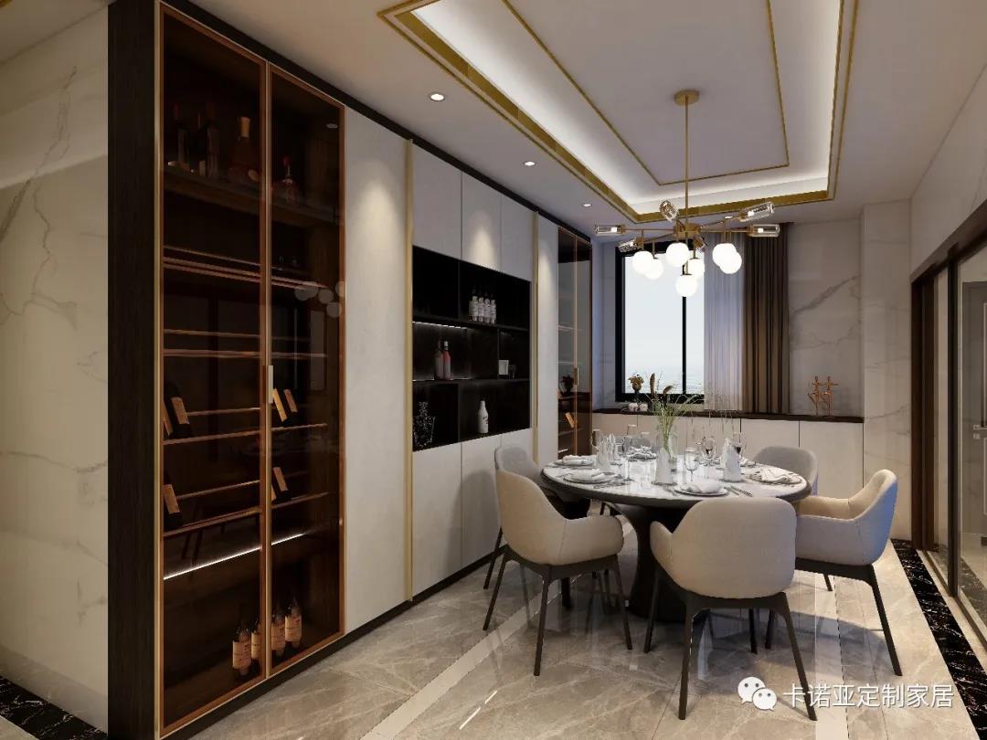 窗户边做了一排收纳柜,加上餐边柜,功能超强,再多客人都不怕,朋友聚会开个小PARTY也是非常有气氛。