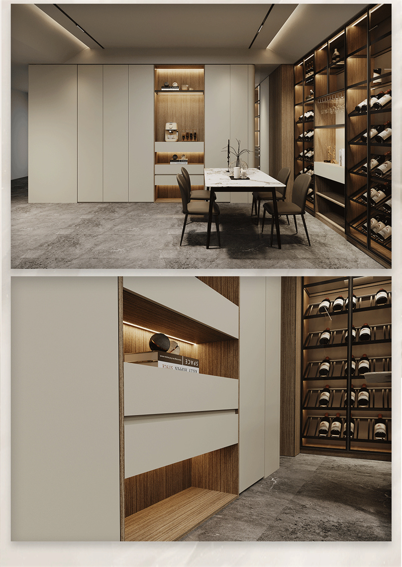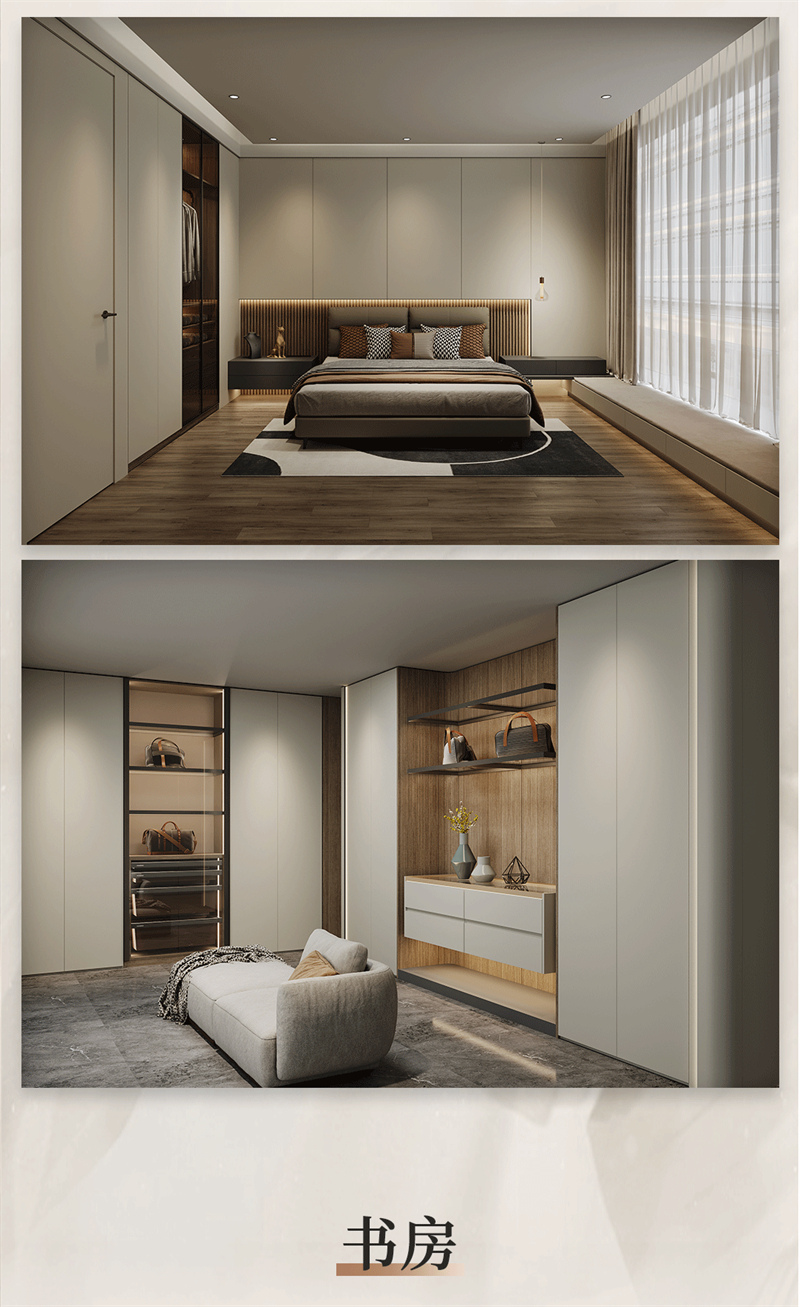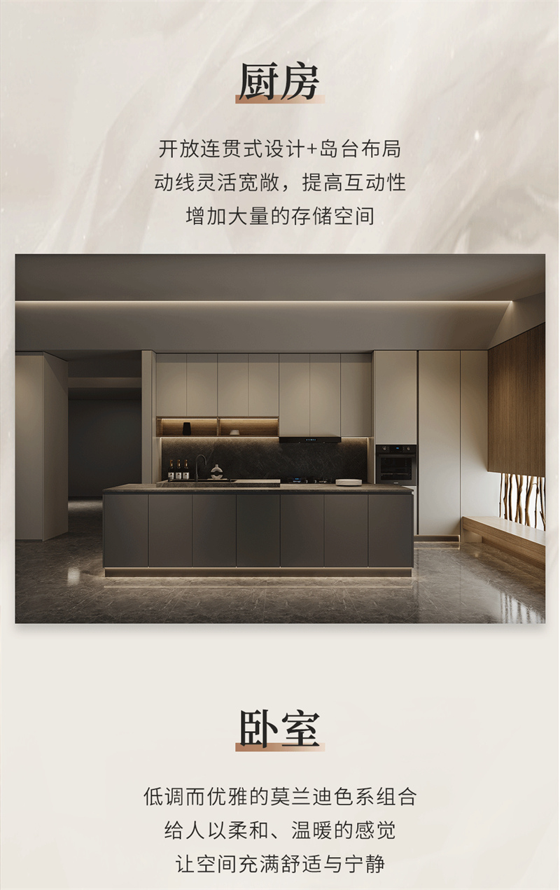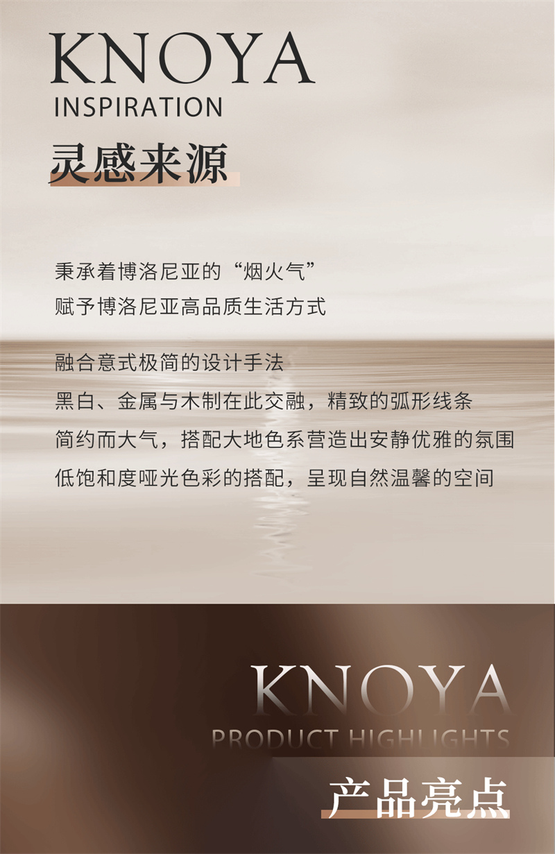 融合意式极简的设计手法,黑白、金属与木制在此交融,精致的弧形线条简约而大气,搭配大地色系营造出安静优雅的氛围,低饱和度哑光色彩的搭配,呈现自然温馨的空间。