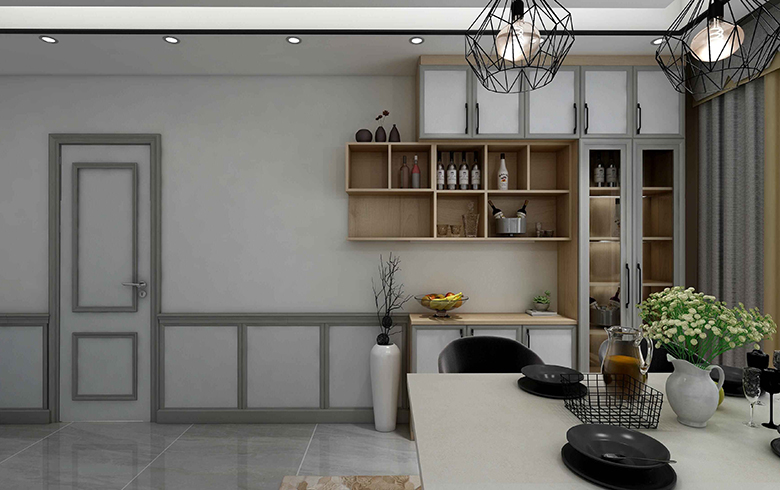 墙裙式护墙系统由印象白+深灰风之谷组合而成,简约经典的灰白色搭配,带来宁静优雅的氛围。