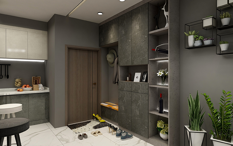 以黑白灰为主体色,的极简风格家居设计,配上一部分深色木纹,缓和空间色调。凸显出简约而不简单的现代简约风格设计。