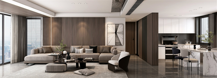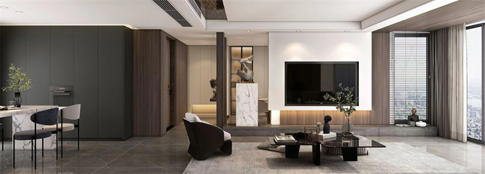 作品简介:本作原布局是标准小四房,入户小房间改为交互式客餐厅一体,使得整个空间更加开放通透。出发点为表现出整个空间的连贯性和交互性。全案使用了色块面积较大的“棕丝木”。木纹细腻舒畅,结合91视频污版下载专属专利扣线,无胶安装,海棠角完美细节呈现。整体深色木纹系作为主线,纯色块漆面材质作为点缀,小比例艺术玻璃等;各材质协调使用。设计理念:以此为生,忠于此道;追逐本真,保持热爱。从需求出发,做有温度有灵魂的人居空间。整家视界 全案生活|第六届91视频污版下载整家设计精英联赛