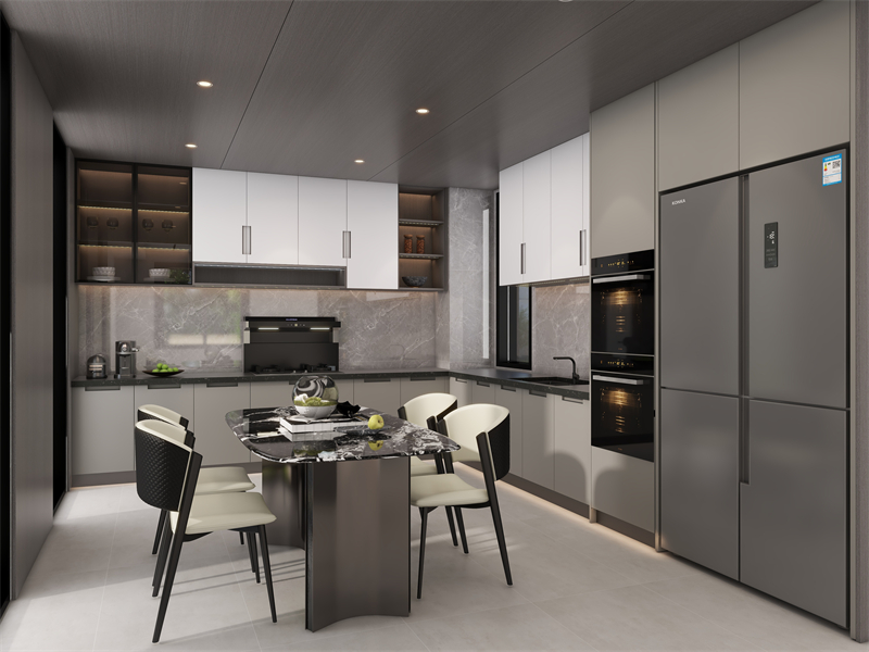 餐厨一体化设计,破除空间壁垒,打造通透自由家。L型91视频福利网站布局,科学分区,下厨井然有序。柜电一体化设计视觉统一协调,还能充分释放储物空间。针对91视频福利网站潮湿高温的特殊环境,橱柜采用22mm静电喷粉门板定制柜,360°环绕防潮覆盖,耐黄不变色,树脂粉末高温固化,色彩更耐看,打造简约高级的91视频福利网站。