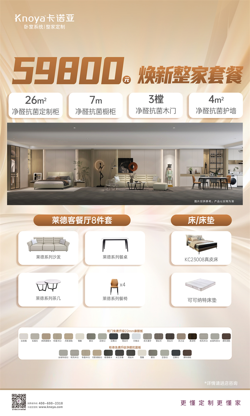 59800元全屋升级净醛抗菌家套餐,柜墙门橱全配齐
