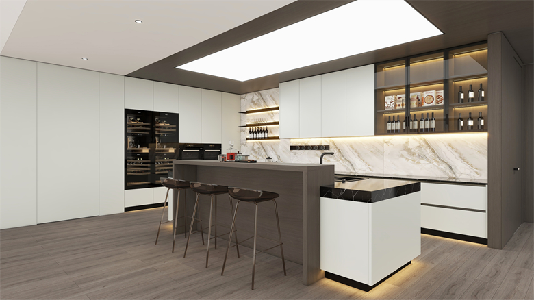 细节处亦见匠心,魔方皮纹内嵌拉手门型搭配拉丝黑拉手,将极简融入基因,门板与拉手浑然一体;可选配的海蒂诗、百隆等进口铰链,让每一次开合都安静顺滑,这份 “看不见的用心” 正是其 “懂设计” 的底气。