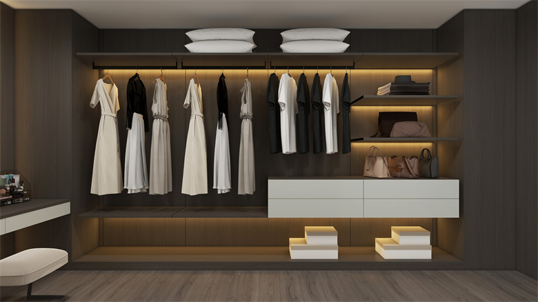 衣帽间以极简疏阔布局,枫沙木、生椰灰与榛果咖搭配,让衣物、鞋子被温柔对待,挑选穿搭成了 “欣赏小确幸” 的过程。罗亚全屋定制用 C 调系列证明:好的定制让家与生活同频,其 “懂设计,有颜值” 的背后,是对年轻人生活态度的尊重与品质的坚守。