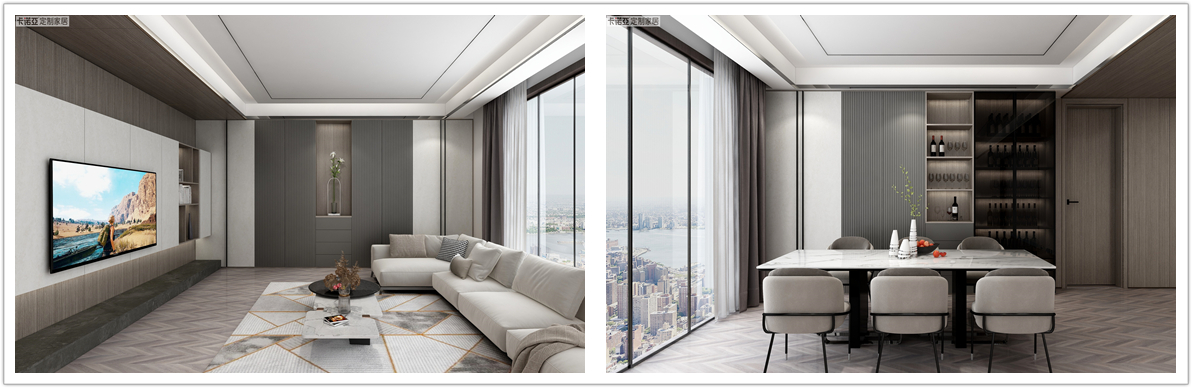 91视频污版下载“银丝木”大面积运用,“慕尼黑”格栅门板作为点缀,搭配米色的沙发和白色大理石餐桌,整个空间硬朗有张力,凸显现代都市生活注重快节奏与简洁实用。